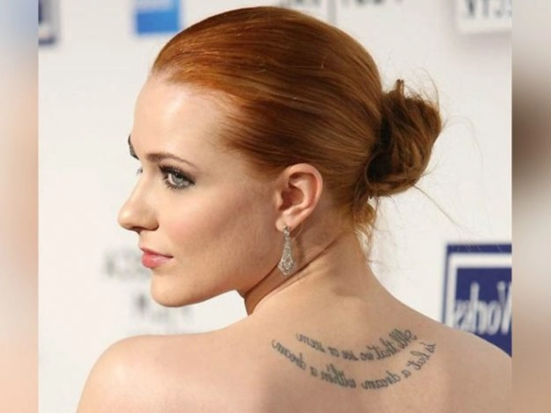 Evan Rachel Wood: Literary Tattoos Evan Rachel Wood has a tattoo on her back quoting Edgar Allan Poe: "Is all that we see or seem, but a dream within a dream?" This reflects her interest in questions about reality and perception. She has nine tattoos in total, including a hidden one inside her lip. Each tattoo represents a facet of her personality and her love for art.