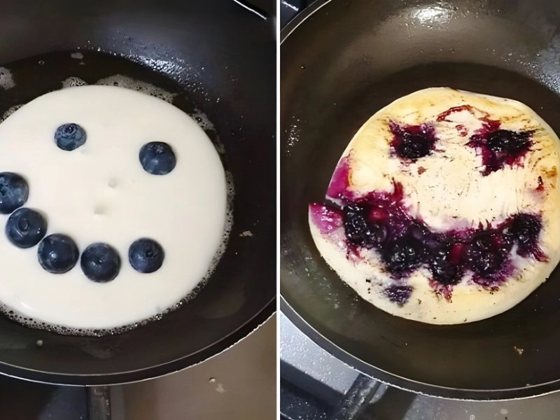 The Challenge: Baking pancakes with blueberries can be tricky, as the berries tend to burst and create unexpected patterns in the batter.